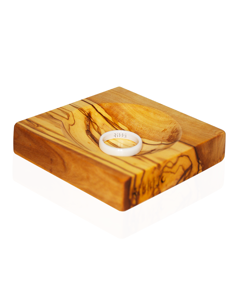 Incluye joyero de madera de olivo 9x9 cm y medidor de tallas Rikki